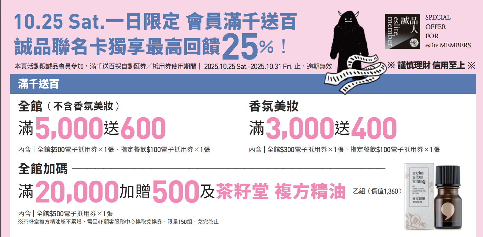 ✧ 南西誠品 會員日:全館滿千送百 ✧